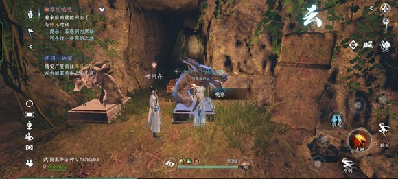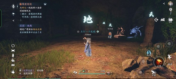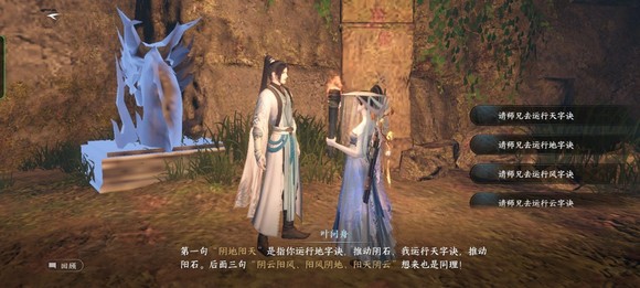 检查了七个石碑就会发现四字口诀:天地风云,很多人会在这里迷茫,注意看诗句:阴地阳天,阴云阳风,这个阴代表女性,阳代表男性,换算过来的意思就是,大师兄运行天字决,你运行地字诀,在推动两个雕像之后,还要再来一轮阴云阳风,你运行云字诀,大师兄运行风字诀,在运行完第二轮之后,就会开启雕像背后的石洞。