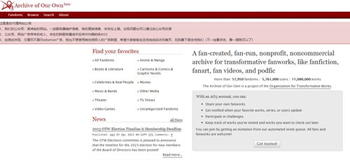 Archive of our own(简称"AO3"),创建于2008年,由Organization for Transformative Works运营,是一个非营利且开源的同人小说数据库网站,站内的文章由网站上的用户所贡献。
