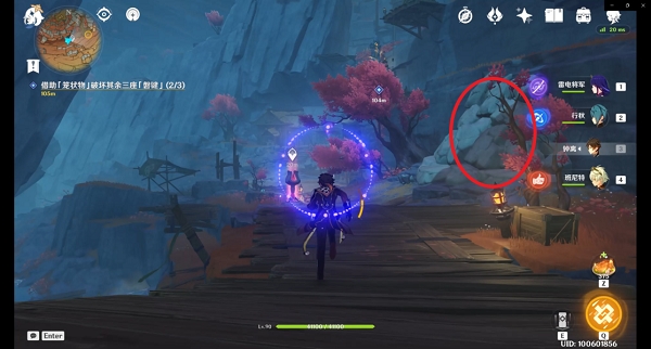 到达第三处「磐键」后可以击碎此大型碎石(里面是一个跳跃平台)快速到达上方