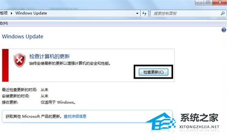 3. 弹出”Windows Update“窗口中点击”检查更新“按钮。