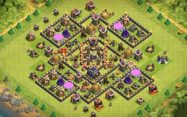 3、阵营布局:这个阵型的外面需要布置三道墙,然后把大本营防止在中心位置,这样即使敌人的手再长也难以攻进来。