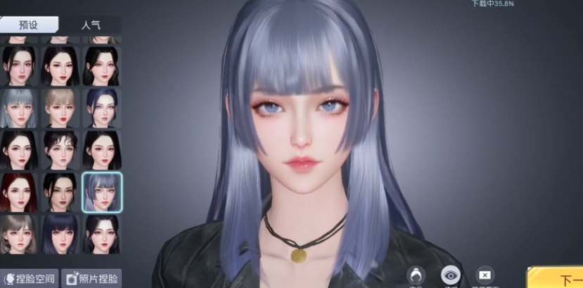 7、在捏脸页面也可以选择预设脸型快速创建角色,在下方的【捏脸空间】中还可以查看更多玩家的捏脸作品并导入使用。玩家们也可以将自己的捏脸作品上传分享哦。或者是直接选择【照片捏脸】,拍摄自己的照片来生成并创建与自己相似的角色进入游戏