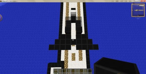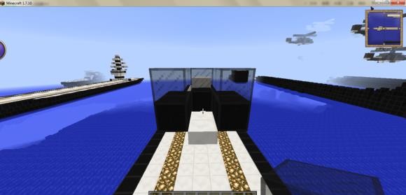 3、玩家吧玻璃从机头处分开,向后延伸两格,并把地板铺上。