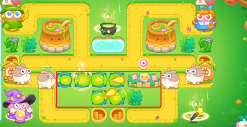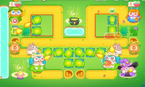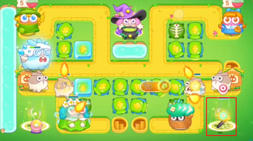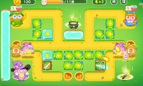 1、首先我们在中间放置瓶子炮,及时清理掉周围的道具,然后继续放瓶子炮,瓶子炮伤害很高,这关就靠他来了。