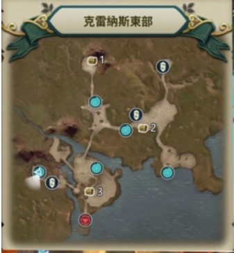 克雷纳斯南部、克雷纳斯东部、瑟雷涅森林、莫尔森林、亚雷克拉高原、风之峡谷、柯艾路可雪原