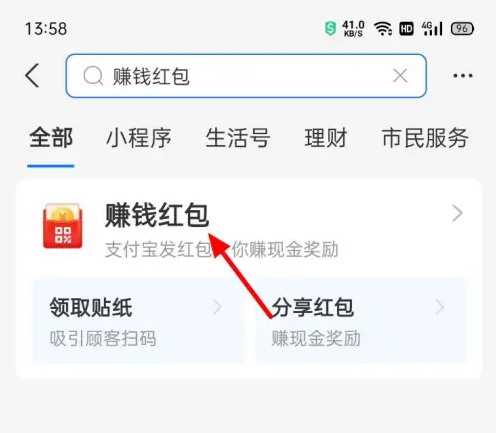 在搜索栏搜索赚钱红包,单击【赚钱红包】。