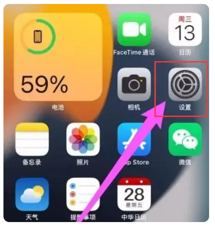 第1步:我们解锁iPhone手机主屏幕,在上面找到"设置"