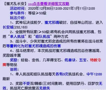 在梦幻西游中,封印蚩尤是一种活动游戏。蚩尤的恶灵会出现在长安。玩家一天只能挑战三次,可以和朋友一起挑战。我们来看看《梦幻西游》的攻略和奖励分析,帮助你成功封印无敌的蚩尤恶灵。