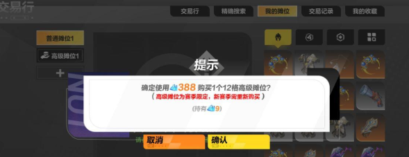 2、购买摊位:如果平时交易场使用的比较多的话,那么建议大家有限使用钻石把摊位购买了。在更新之前需要980钻石才能购买12个摊位,现在只需要320个钻石就够了。