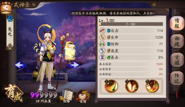 2、觉醒后的兔丸生命和速度可以达到S,很适合作为辅助的属性。