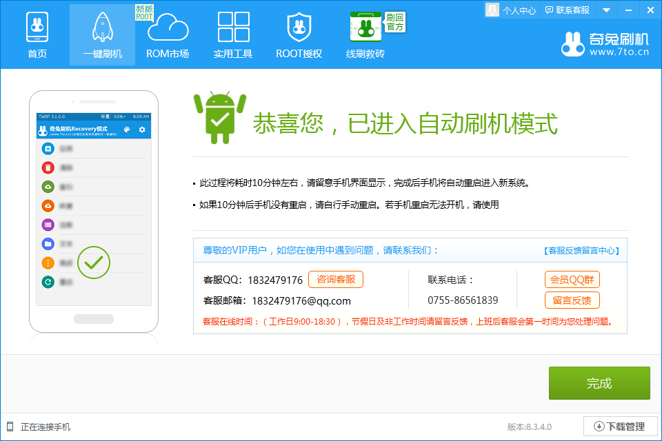 耐心等待一段时间,保证小米 索尼爱立信 LT15i(Xperia Arc)手机正常连接,下载完成后会自动刷入并开机