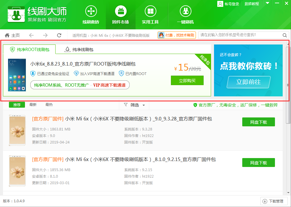 1、打开线刷大师(点击下载),点击“立即去救砖”功能