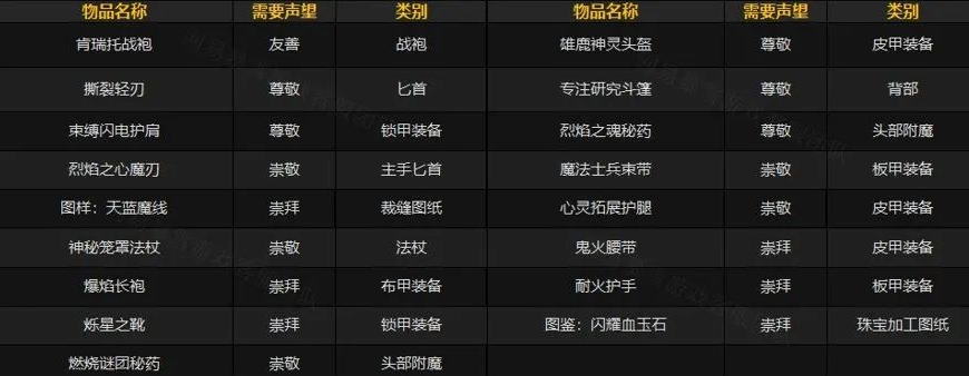 3、我们可以在这位军需官处购买声望战袍、装备和图纸等。
