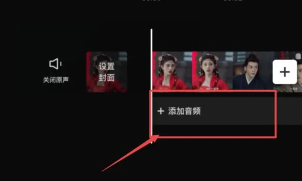 1、剪映中导入素材之后,点击素材下方的"添加音频"。