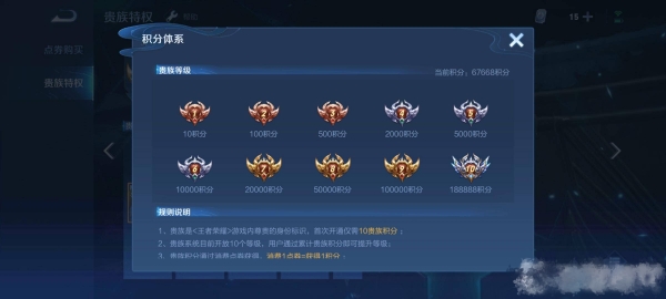 3、贵族积分通过消卷点券获得,消巷1点券=获得1积分。