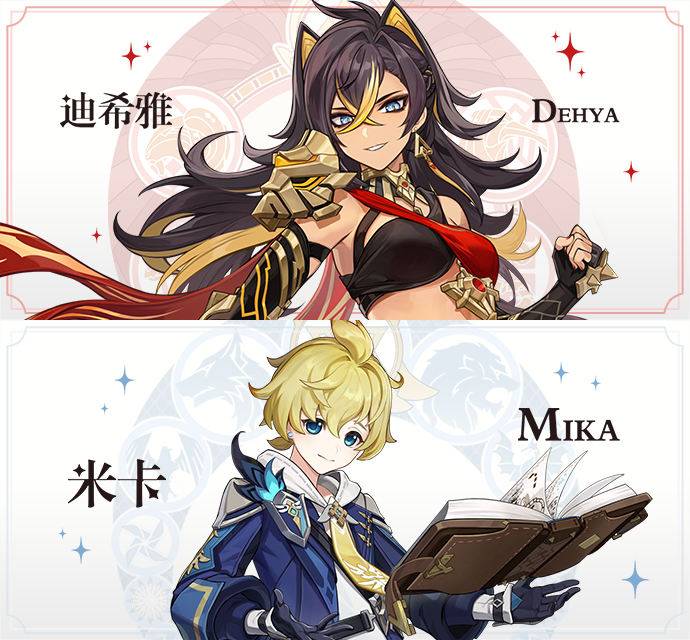 1、新角色:迪希雅+米卡。(迪希雅在3.6版本进入常驻)