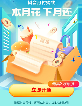 开通使用抖音月付需要用户的抖音账号达到一定的活跃度,也就是要经常使用抖音进行购物、消费、缴费、收款等活动,或者使用过抖音放心借等其他贷款产品。