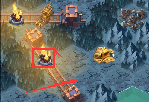 7、我们获得大宝箱后朝着右侧移动,控制装置移动火把消除周围鬼火营地。