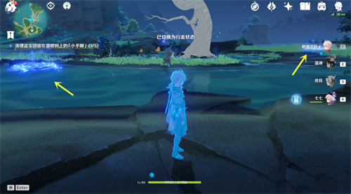 大家在找到神樱树后,开启元素视野,这时,大家就会看见雷樱树周围有2~3个蓝色磁场。