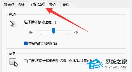 8. 在指针选项下的页面里,还可以修改移动速度、移动加速度等选项。