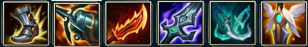 六神装:攻速鞋+海妖杀手+鬼索的狂暴之刃+破败王者之刃+幻影之舞+复活甲