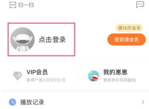 1、打开芒果tv手机客户端,来到右下角【我】,然后点击最顶部的【点击登录】。