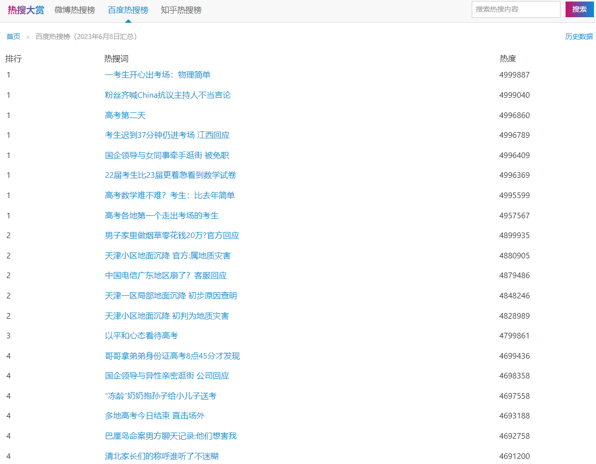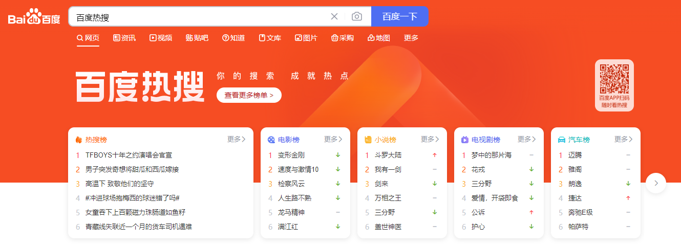 百度热搜榜历史记录怎么查?百度热搜榜历史记录在哪里查?百度热搜共包含9个榜单,分别是热点榜、小说榜、电影榜、电视剧榜、动漫榜、综艺榜、纪录片榜、游戏榜、汽车榜。其中,热点榜主要反映热点事件在百度平台的热度,其他榜单主要反映榜单内关键词在百度平台的热度。