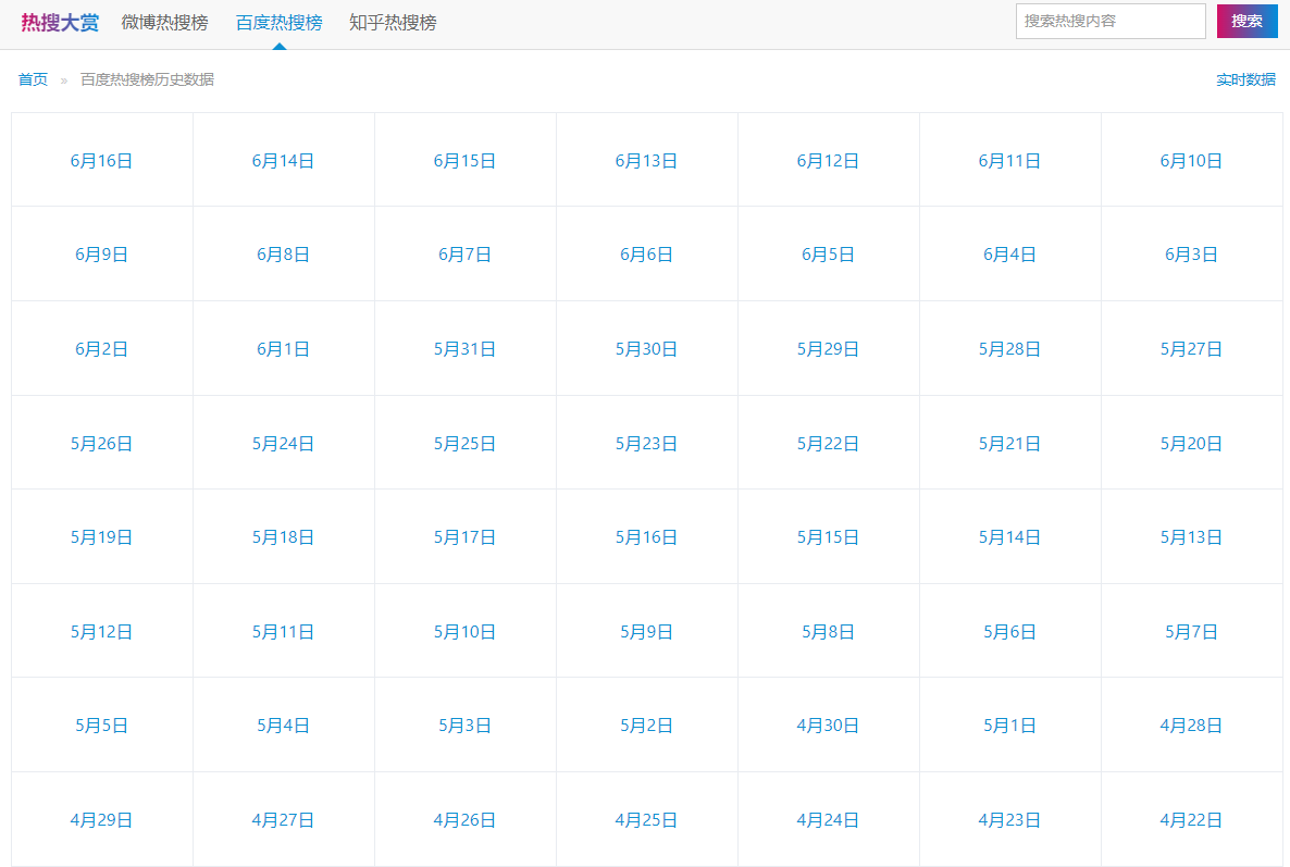 4. 进入"历史热点"页面后,你可以选择查看某一天的热搜榜单,也可以在搜索框中输入关键词搜索特定日期的热搜榜单。