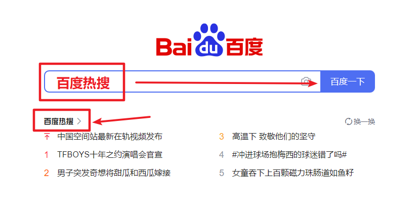 1. 打开百度搜索网页,在搜索框中输入"百度热搜"关键词,或直接点击"百度热搜";