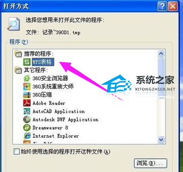 5、比如在选择.tmp文件打开方式的时候,还有推荐打开程序,这里如果有推荐程序打开的话,就只选择推荐打开程序即可打开。