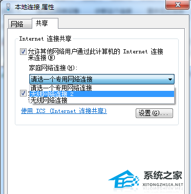 6. 先将界面切换到“共享”选项,在“允许其他网络用户通过此计算机的 Internet 连接来连接”前方的复选框打上勾,然后点击“确定”。