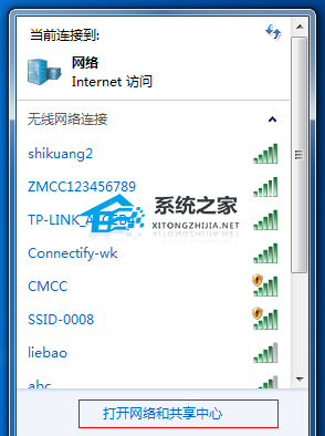 3. 无线网络设置完毕后,打开“网络共享中心”进入下一步。