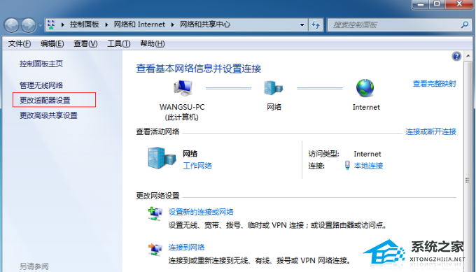 4. 点击“更改适配器设置”。