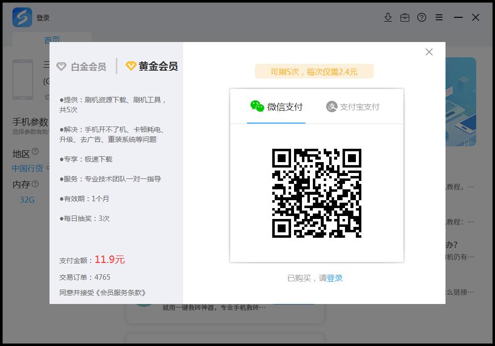 6支付购买会员之后会自动开始下载对应的手机刷机包