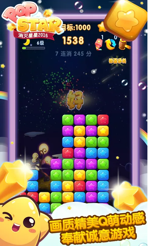 4、奖励分尽可能地消灭更多的星星,剩下的星星越少,奖励的分数就会越多,需要玩家学会排兵布阵。