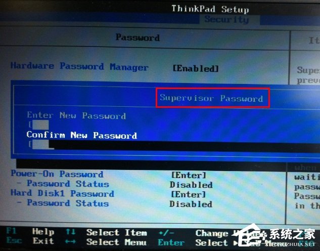 F1进入bios必须输入Supervisor Password,否则无法对bios设置做更改。
