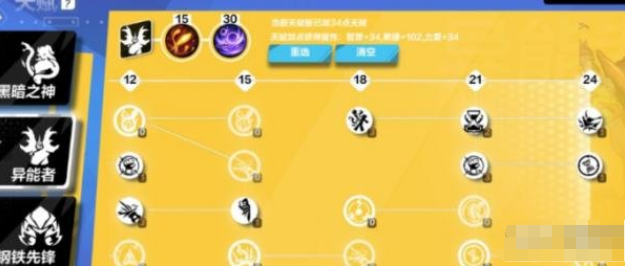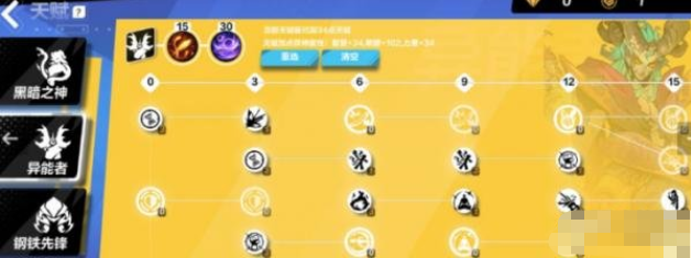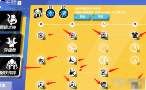 天赋选择:黑暗之神、钢铁先锋、钢铁先锋