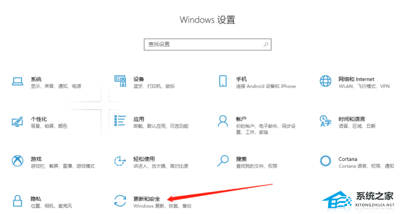 1. 打开电脑设置,点击“更新与安全”。