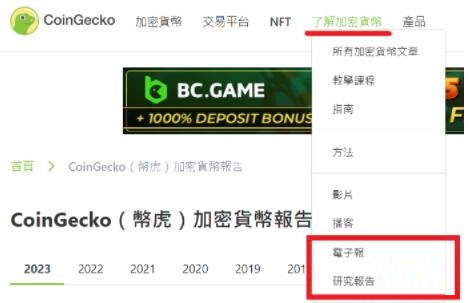 在了解加密货币这边的最下方,电子报点进去可以填写email 订阅电子报,研究报告每季出一次,有多种语言版本,但目前没有中文版。