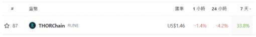 可以从类别去找币,也可以反过来从币去看它属于哪个类别。例如这是撰文当下7 天内涨幅最高的币: