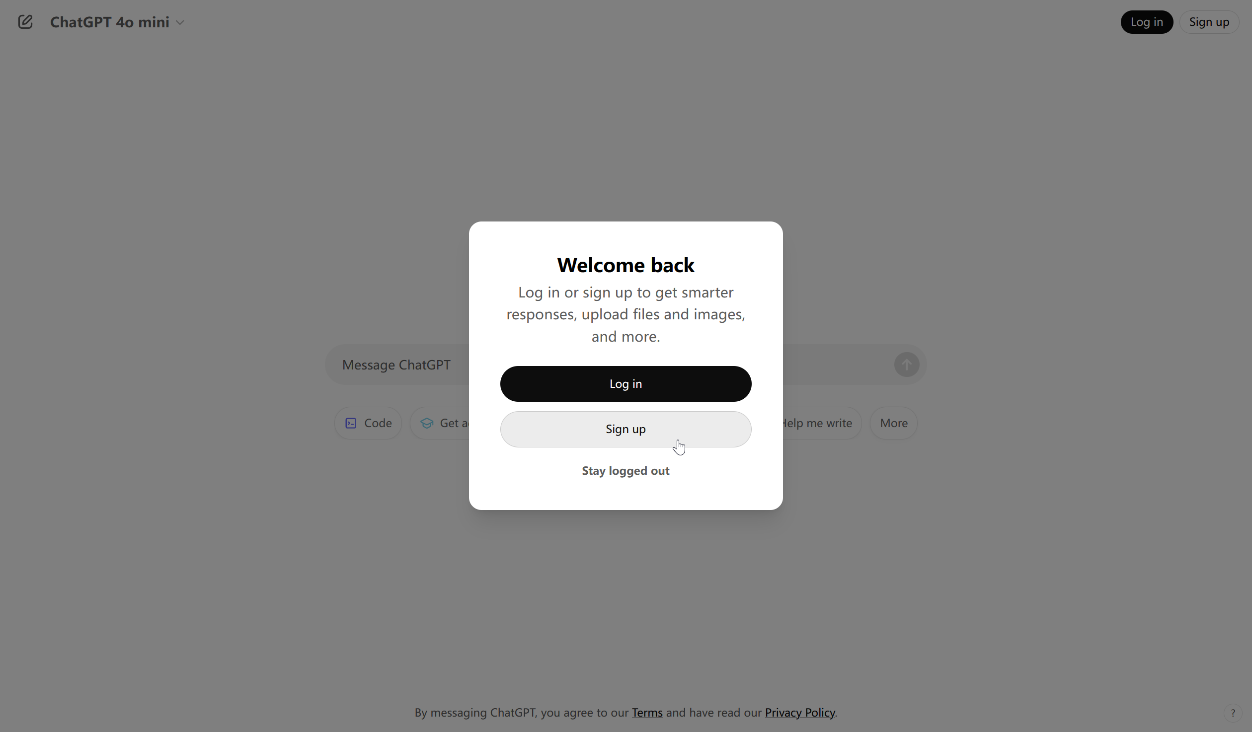 在浏览器地址栏中输入https://www.openai.com/signup 并按下回车键。您将被重定向到OpenAI的注册页面。