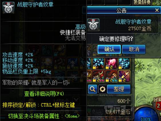 在五一纹章发售之后,就给了全民一个免费的纹章:战舰守护者,只要完成活动地下城的任务后,就能免费得到这个纹章,这个纹章没有四维属性,只有2点三速和5kg的负重,但胜在可以修理,在当时这点免费的福利还是值得一做的。