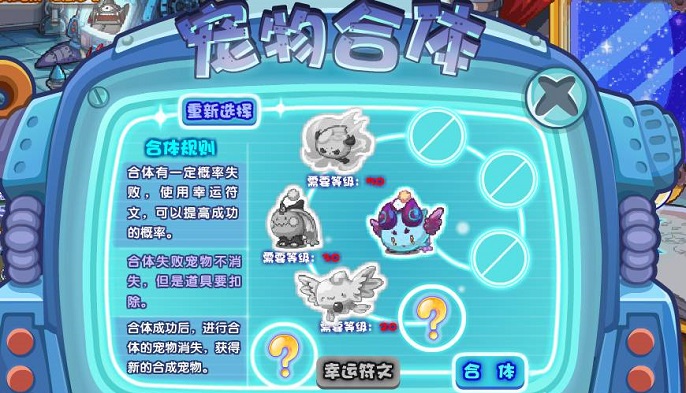 2、合成多灵主需要一只50级的生命蓝灵、30级的意志紫灵、20级的自由黄灵,外加粘合剂,点击合体即可合成,但是有一定的概率失败。