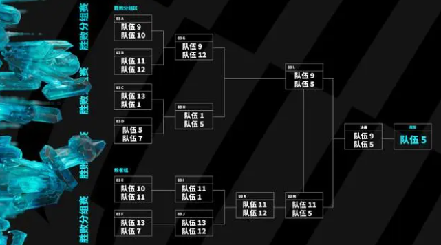 八支队将被分为两组,然后采用组内BO3双败淘汰赛,共选出三支晋级的队伍,有意思的是,每组的败者组亚军将进行最后一场厮杀,来确定第三支晋级的名额,如下图: