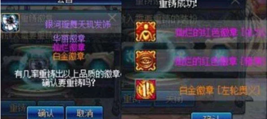 4、分解成功后,将变成一定数量的不同颜色的徽章存入背包