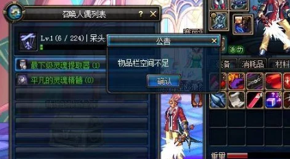 1、装扮栏都被时装填满时,游戏会提醒大家物品栏空间不足。