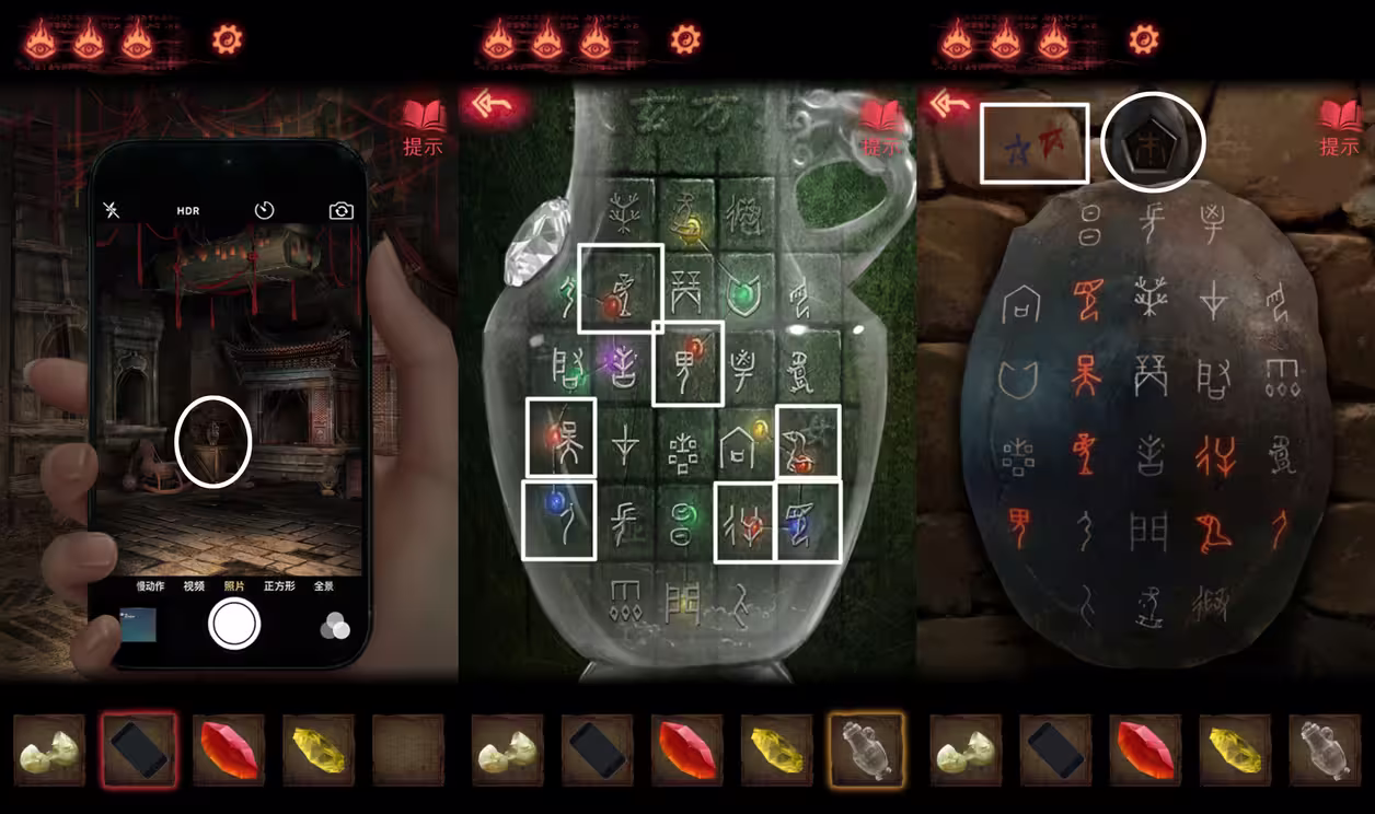 5、用【玉石】砸碎镜子,用【手机】可以看到真实的场景。