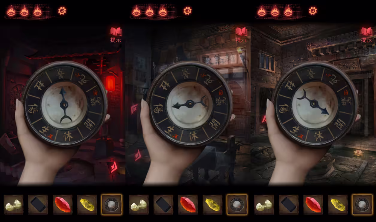 12、到各层拿出【罗盘】,得到第一、二、三层对应的八门,【罗盘】上有第四、五、六层对应的八门。