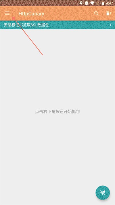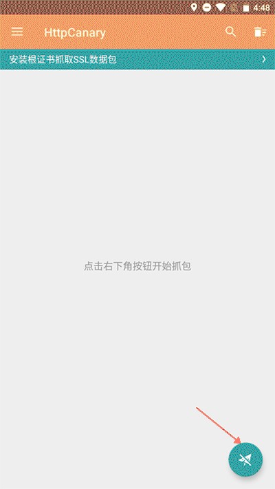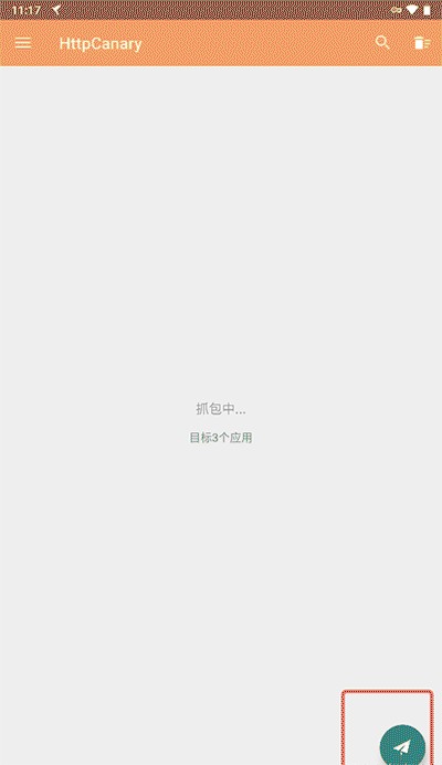添加好目标应用后,点击主页右下角的小飞机图标,开启抓包,开启抓包后进入轻颜相机,随便点两下就可以返回Http Canary了。