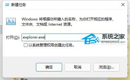 4. 然后在其中输入“explorer.exe”回车运行即可。